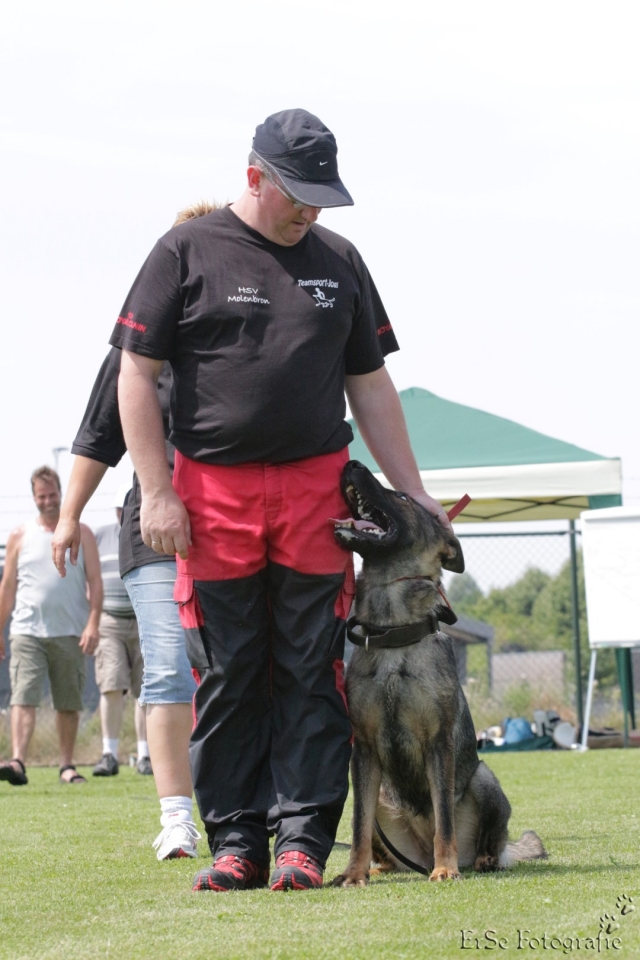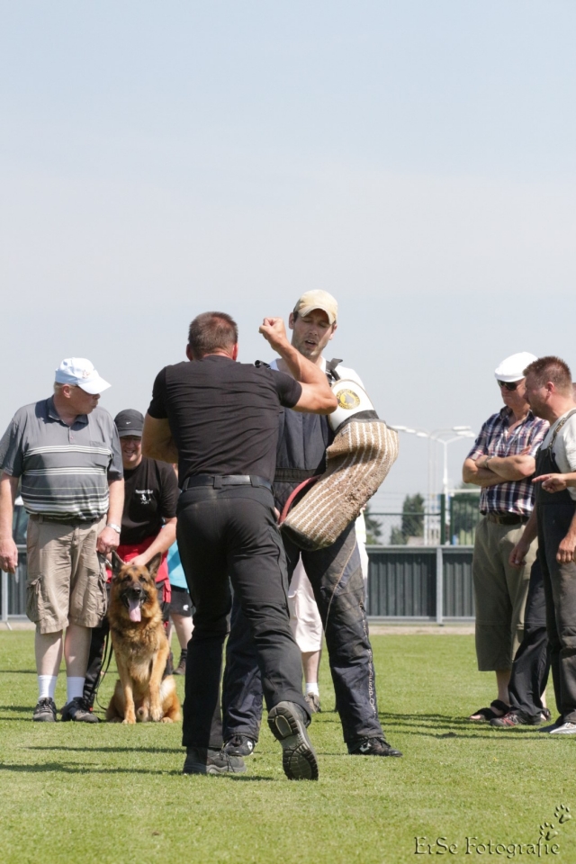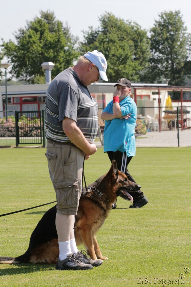 Alle deelnemers met honden hadden inderdaad hun voorzorgmaatregelen genomen en d.m.v open auto's, paraplu's, lakens etc. er voor gezorgd dat de honden zo koel mogelijk stonden. Er waren twee tenten op het veld gezet voor schaduw alsook twee badjes bij de uitgang waar de honden konden afkoelen.