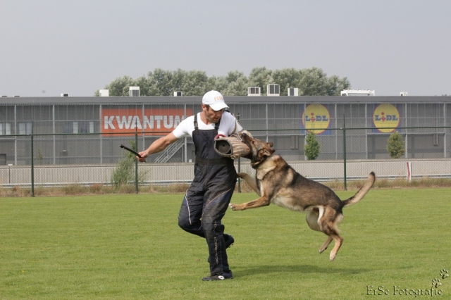 John heeft in het buiten gedeelte mee gedaan aan Kynologie, om het verschil tussen een getrainde en niet getrainde hond te laten zien.